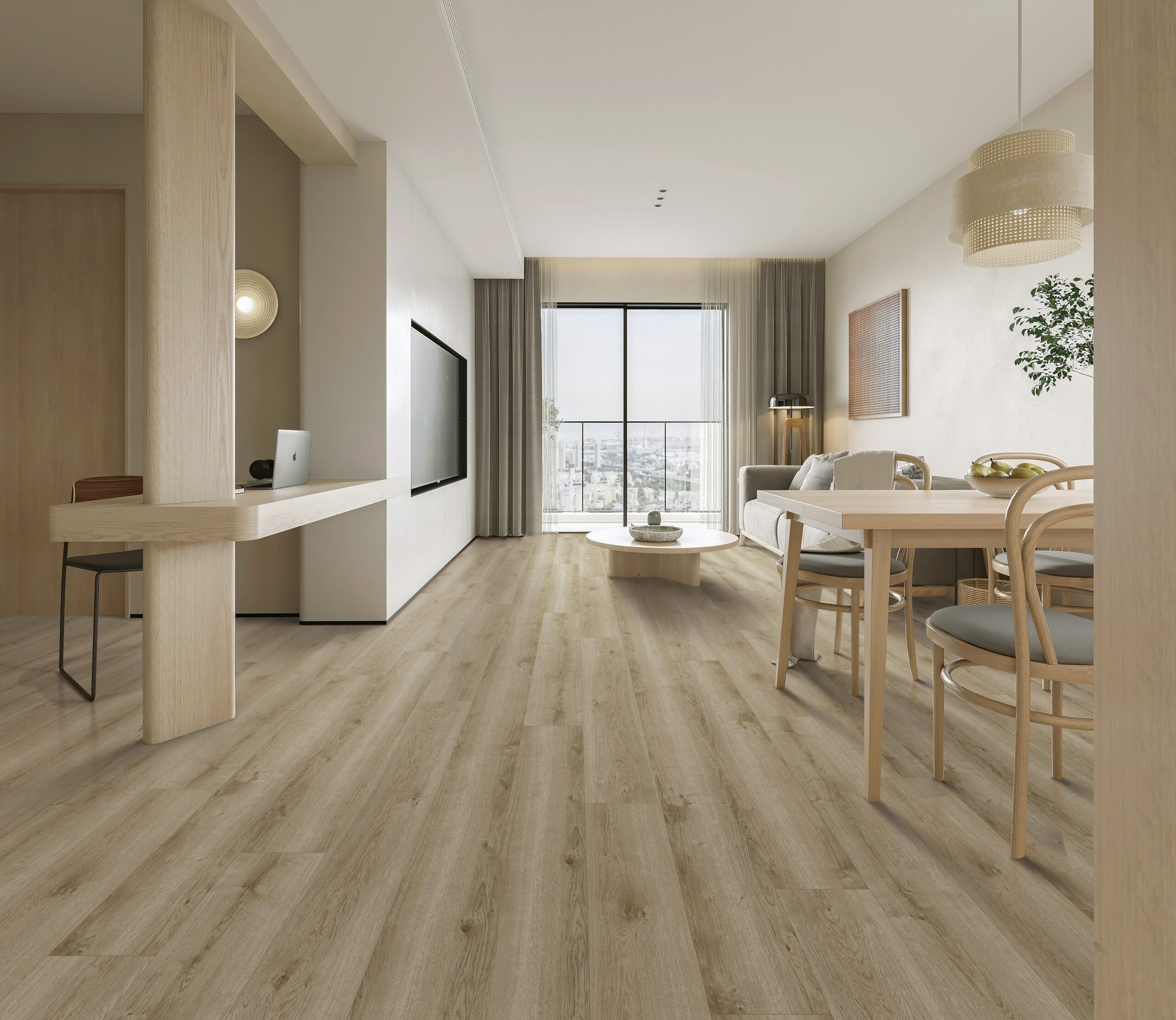 Enhanced with a commercial-grade wear layer, our flooring is built to withstand the demands of daily life, maintaining its polished appearance for years to come.